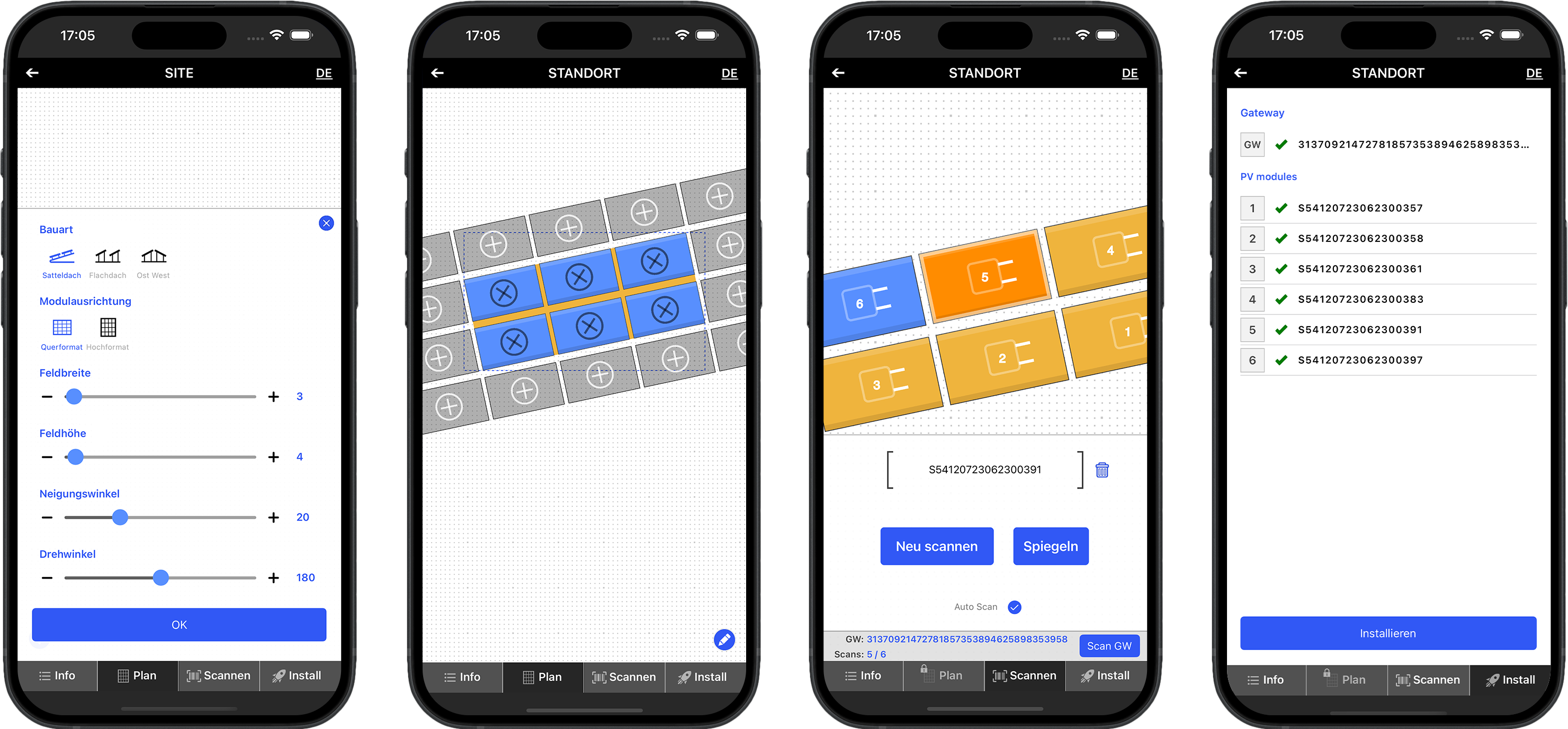 Die Taylor‑Hardware & ‑Software wurde mit Installateuren, für Installateure entwickelt. Mit 50 % weniger Steckverbindern als bei Mikro‑Wechselrichtern oder Optimierern geht es schneller – und mit weniger Fehlerrisiko. Nach Abschluss erhältst du direkt Feedback vor Ort. Die Taylor‑Tools helfen dir beim Layout und während der Installation. So sparst du Zeit – auf dem Dach und in der Vorbereitung.