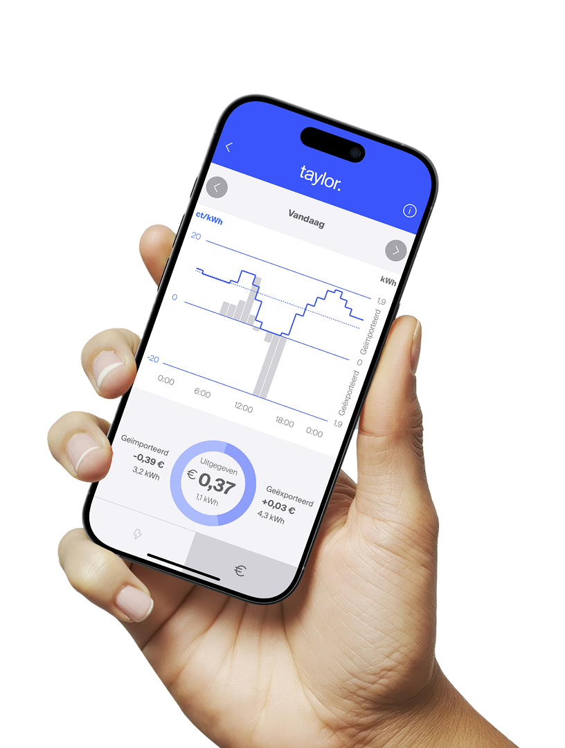 Je dak is beperkt, maar je energievraag groeit naarmate we verder elektrificeren. Kies je nu voor lage opbrengst of een rommelige energiehuishouding, dan kom je later vast te zitten in je verduurzaming. Extra panelen bijleggen is meestal geen goede optie, of gewoonweg niet mogelijk. Inefficiënte omvormers vervangen is onwenselijk. En niemand zit te wachten op gedoe of onderhoud. Met Taylor kies je voor één compleet systeem dat vanaf dag één goed werkt, slim met je energie omgaat en klaar is voor de toekomst.